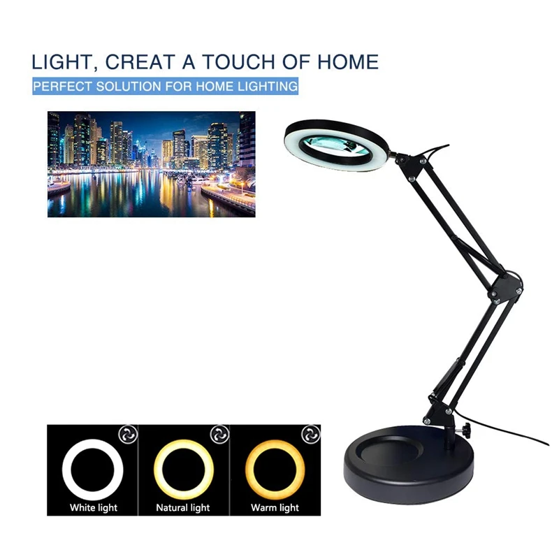 BEST Promotion! 2-In-1 Dimmable Daylight Bright LED Magnifying Lamp with Utility Clamp and Stand 3 Color